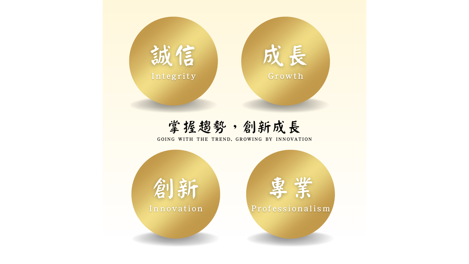 「誠、信」是全體員工待人處事的基本信念;同時我們深信創新成長,以客戶為尊的服務導向是從事科技產業應有的立業精神;我們以增進專業技術素養和提升服務品質為達成客戶滿意的努力目標。在企業內部,我們更充分發揮和諧的團隊精神,彼此手心相連,在互利共榮中與科技產業同步成長,共創更美好的明天。