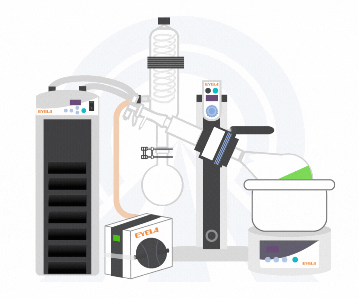 - 真空幫浦和真空控制器(選配) : 產生低壓真空環境來降低蒸餾溶劑的沸點。