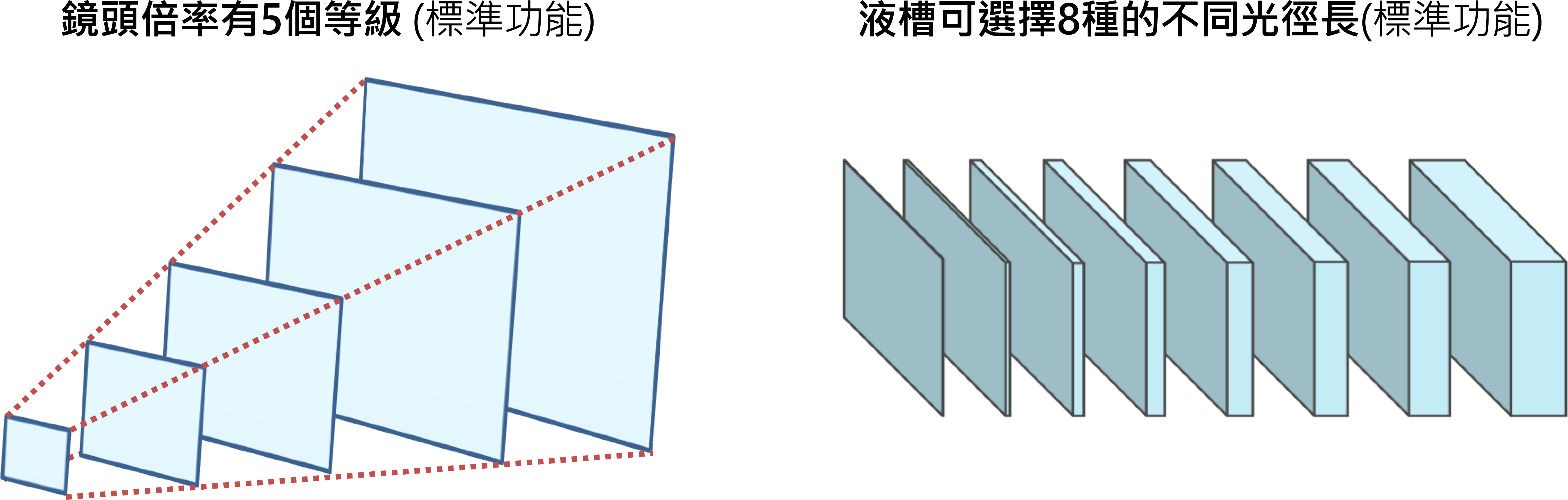 同時攝影機鏡頭模組提供了5種不同的放大倍率,可提高計數效率和測量精度,符合使用者實際需求。